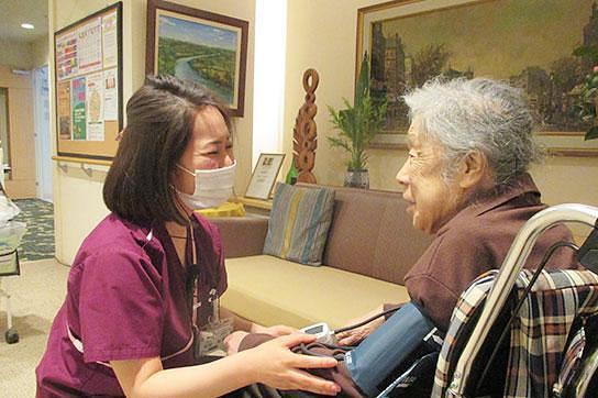 看護職員を24時間配置*1しています。日々の健康管理や服薬管理はもちろん、胃ろうやたん吸引、インシュリン注射などの医療的ケア(診療の補助)が必要な方もご相談が可能です。また、かかりつけ医や介護職員と連携し、皆様のご生活・ご健康への不安を少しでも解消できるように努めています。