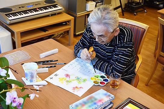 絵を描かれるご入居者様 ご入居者様と共に創る住空間。「その方らしさ」を大切にした暮らしの提案をさせていただきます。