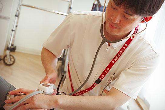 看護職員を24時間配置し、ご入居者様の主治医の指示のもと、夜間のたん吸引や胃ろうなど医療的ケア(診療の補助)の対応が可能です。また、些細な体調変化などにも専門的な視点から、主治医や介護職員と情報共有・連携しながら日々の健康管理に努め、皆様に快適な日常をお送りいただけるようにサポートいたします。