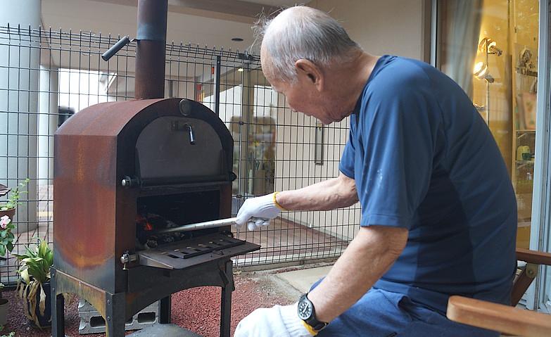 2025.08.20ピザ窯でアップルパイ当ホームにはピザ窯があります。いつもはピザを焼いたり、焼き芋を焼いたりして大活躍のピザ窯ですが、今日はアップルパイを焼きます。暑いなか、熱い窯の火を見てくださっているご入居者様。おいしそうなアップルパイが焼き上がりそうです。ありがとうございます!