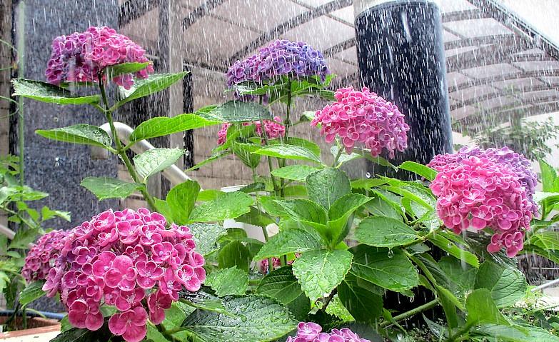 2025.07.022色のアジサイ当ホームで昨年度に植えた2色のアジサイが、今年も開花しました。ご入居者様もアジサイの開花を楽しみにされていたようです。天気のいい日には、観賞されているご入居者様もいらっしゃいます。色合いもよく、当ホームの看板花になっています。