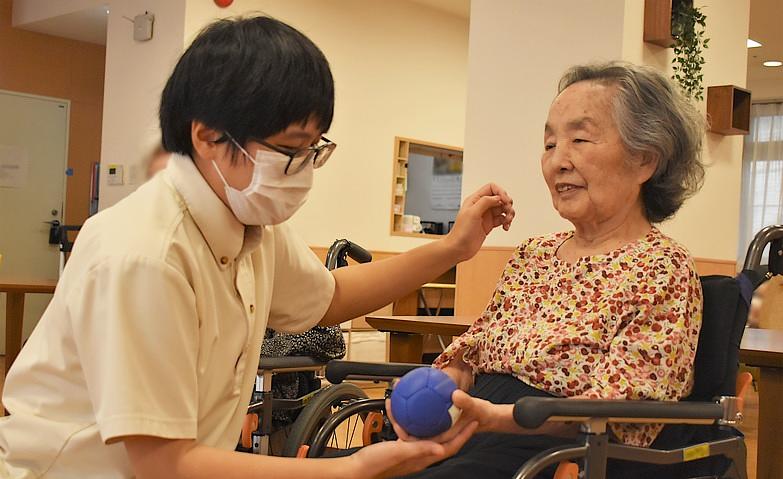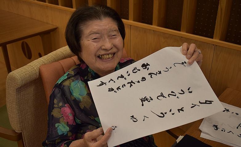ほぼ毎日、アクティビティを実施しています。午前は集団体操。お身体を動かしていただき、日常動作に必要な身体機能の維持を図ります。座位で行うもの、タオルなど身近にある道具を使用するものなど、バリエーションを揃えています。午後はコーラスや書道、ボッチャなど、どなたにもわかりやすく、ご参加いただきやすいアクティビティを行っています。