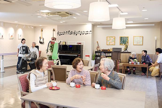 ダイニングルームでのご入居者様のご様子 ダイニングはそれぞれが毎日好きなことを楽しめるホームの中心です。