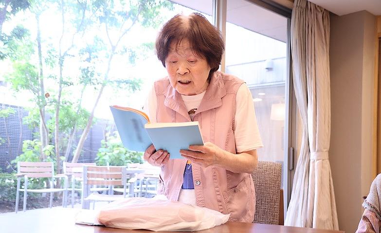 2025.09.12詩吟発表ファミリールームで外部よりお招きした先生と一緒に詩吟の練習をされていたご入居者様が、皆様の前で披露されました!普段コーラスサークルの活動もされていますが、コーラスサークルとはまた違った歌声ですてきでした!