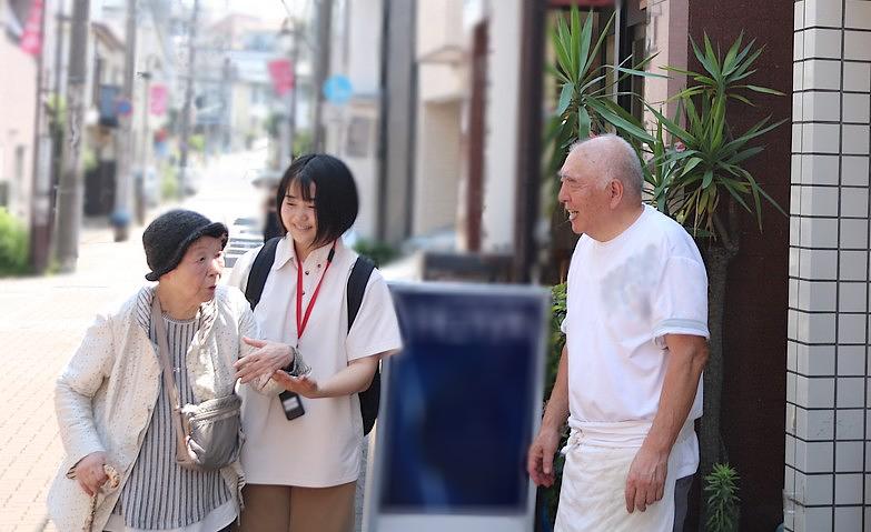 2025.07.06慣れ親しんだ「地域」で暮らし続ける当ホームに入居されている方のなかには、大田区で長くお暮らしになり、この地域を愛されている方も住まわれています。今回のお散歩アクティビティでは、地元の商店街へ。いくつかお店を巡っていると、「お久しぶりです。お元気そうですね!」と和菓子屋さんのご店主が声をかけてくださいました。住まいは変われど、地域でのお暮らしを続けていただける。そんなひとコマです。