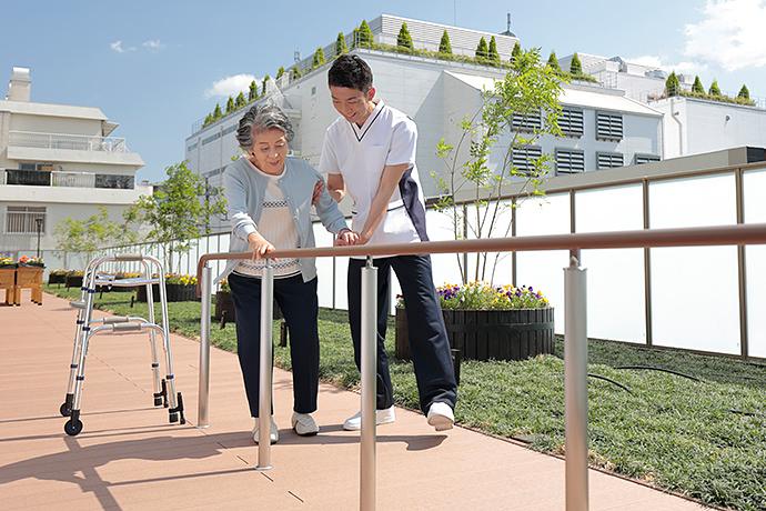 機能訓練指導員がお身体のご状態を評価し、お一人おひとりに合わせた個別のリハビリや集団リハビリなど身体機能の維持・向上を図るためのプランをご提案しております。リハビリの先にあるお一人おひとりの「夢」や「目標」をうかがい、その実現に向けて身体づくりの面からサポートすることで、いつまでもご自分らしく、楽しくお過ごしいただけるようなリハビリプランとなるようご提案させていただきます。