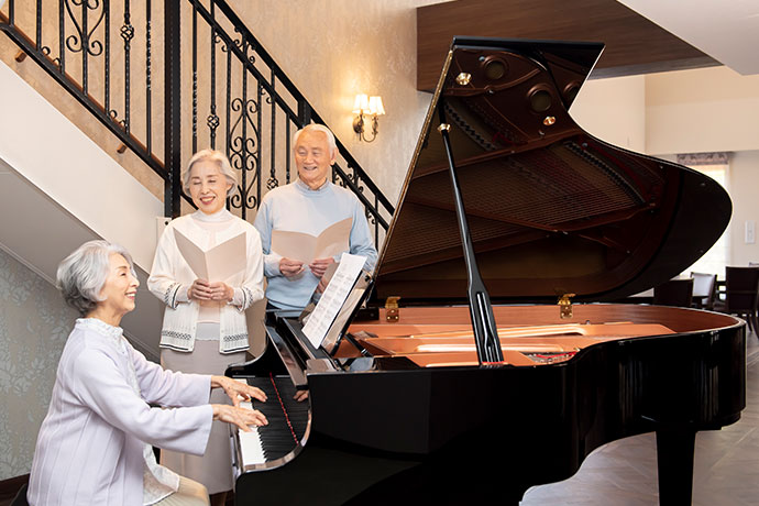 料理、俳句、日本絵画、音楽など多彩な分野から一流の講師陣を招き、本物を学ぶ「アリア」の社交の場「リミテッド倶楽部」。同じ志の仲間が集い、新たな出会いや楽しい会話、いきいきとしたお気持ちが生まれる活動です。また、お一人おひとりが耀ける舞台として「お披露目の場」も定期的にご用意することで、その方の意欲や生きがいにつながり、日々の生活がさらに彩りにあふれていきます。