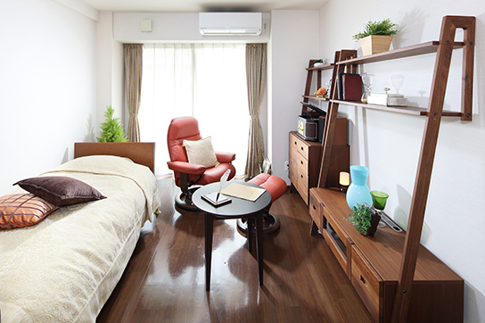 広々とした設計で床暖房完備。介護が必要な方も安心の居室。