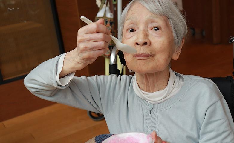 2025.08.20冷たーいかき氷!暑い日が続いている今日この頃。今日はかき氷を皆様で召し上がりました。シロップを緑・青・赤から選んでいただき、「じゃあイチゴ!」と選択されましたが、実は味は全部一緒です。そのことをお伝えすると「えっ!そうなの?びっくり!」とおっしゃっていましたが、「見た目だけでもイチゴの味がした気分!おいしいわ」と笑顔を見せてくださいました。
