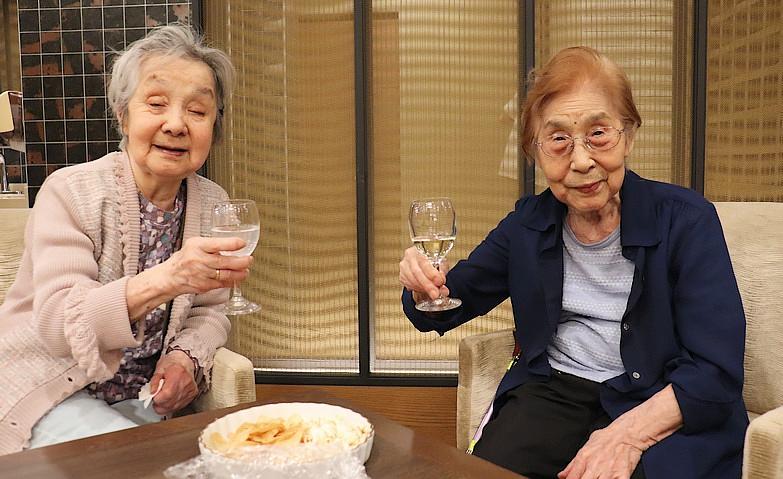 2025.08.23カンパーイ!通常隔月で開催しているバーアクティビティ。バーの開催に向けて皆様でおつまみを作り、クラッカーの上にチーズや切ったトマトをのせて、お酒と一緒に召し上がりました。お酒が飲めない方にはジュースを提供させていただきました。「自分たちで作ったおつまみもあっていい雰囲気」と、ジャズをお聴きになりながら、たのしいひとときをお過ごしいただけたようです。
