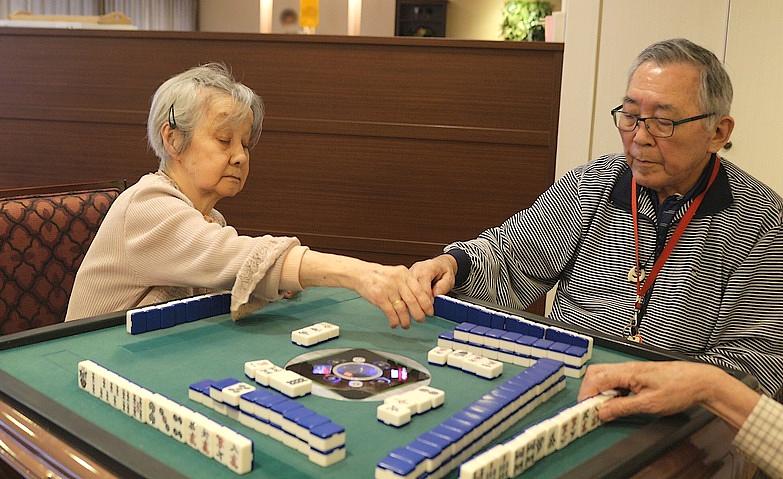 2025.08.18麻雀サロンへベネッセの他ホームとの交流で行っている麻雀サロンに参加されました。一手一手、皆様は真剣な表情。顔なじみのご入居者様もいらっしゃいましたが、他ホームのご入居者様とも卓を囲み、「あなた強いわね!そうくるとは思わなかったわ」と楽しそうにお話しされていました。最後には「次もよろしくね!」と約束していらっしゃいました。