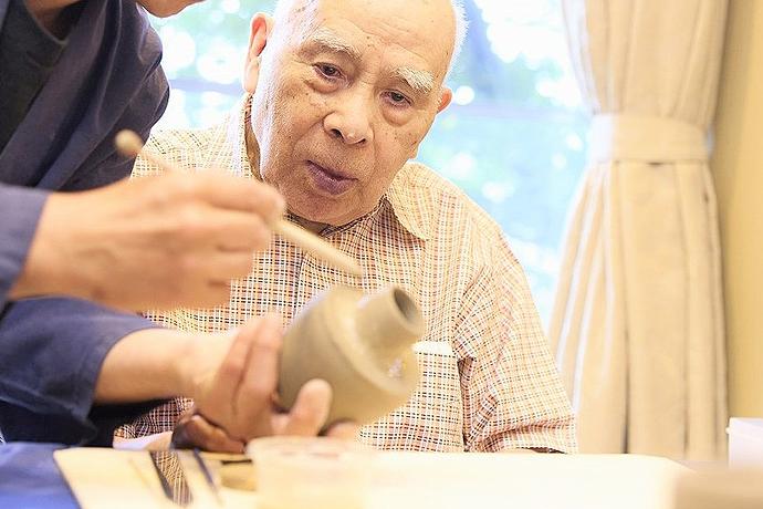 「リミテッド倶楽部」は、東京の「アリア」シリーズのホームが創る「社交場」です。彩り豊かな暮らしをお楽しみいただくために、芸術・文化・食事・音楽など多彩な活動を展開しており、それぞれの分野で活躍されているプロの講師をお招きしています。こちらは、「アリア等々力の杜」で開催された「陶芸倶楽部」のご様子です。趣味の活動をほかのホームのご入居者様と一緒に楽しんでいただくだけでなく、さまざまなお話しを交わしながら交流を深めることも、多くの入居者様によろこんでいただけているようです。
