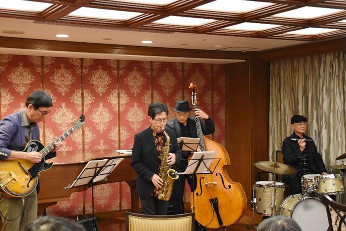 「JAZZ演奏会」のご様子 通常毎月、歌や楽器の演奏会を行っています。