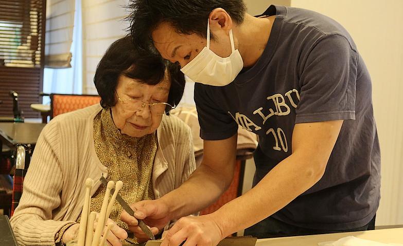 定員が36名という小規模なホームだからこそ、スタッフがご入居者様の日々のご様子をていねいに拝見し、ご入居者様のやりたいことを行っていただけるホームを目指しています。「昔みたいにうまくできないかも」といった不安も払拭できるようなサポートに努めています。「自分はまだこんなにできるんだ」と自信を持っていただけることを目指しています。