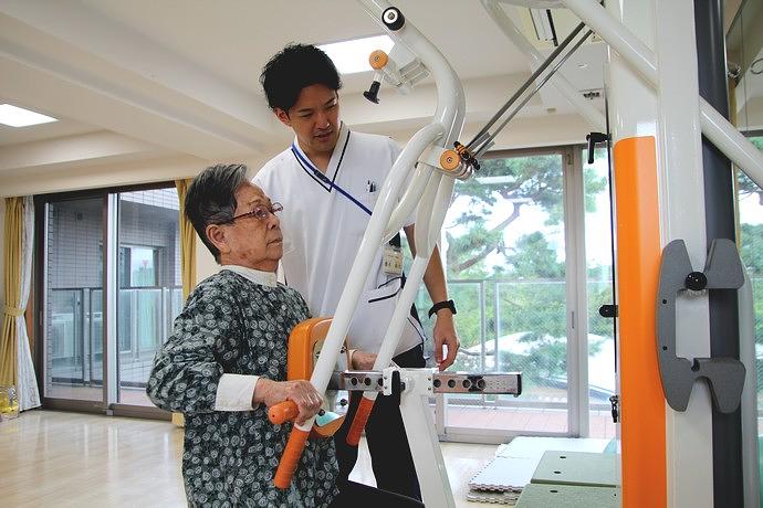 機能訓練指導員がご入居者様お一人おひとりのお身体の状態を確認し、多職種のスタッフと連携を取りながら、ご入居者様がご自分らしい生活を続けられるよう、リハビリメニューのご提案やお身体に合わせた福祉用具の選定、使用方法のアドバイスをさせていただきます。