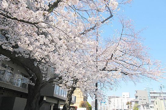 ホームの桜の様子 四季の変化をホームにいながら感じられる、等々力渓谷に隣接した自然豊かな環境