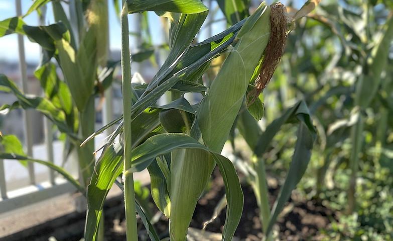 屋上庭園で野菜を収穫されたご様子 さまざまな景色や菜園も楽しめる自慢の屋上庭園