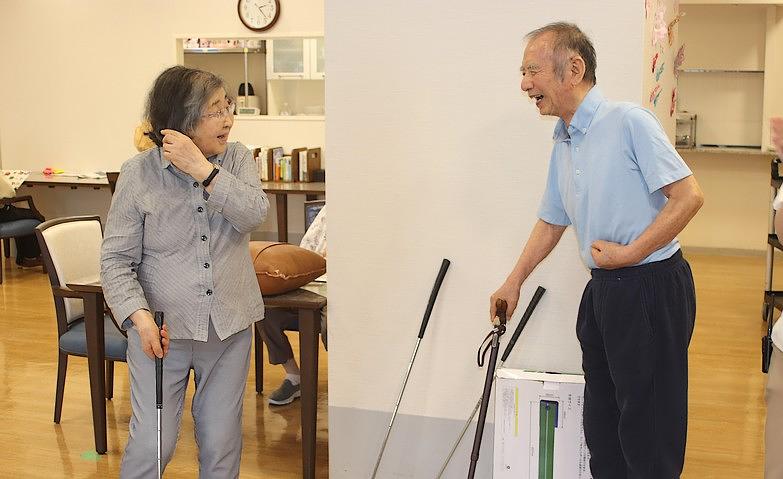 2025.07.30旦那様よりアドバイス先日、パターゴルフのアクティビティを開催しました。こちらはご夫婦で参加されたご入居者様です。奥様が挑戦された際、旦那様のアドバイスと応援により、1回目でカップイン!ボールがカップに入った瞬間、お二人で顔を見合わせて喜んでいらっしゃるお姿が印象的でした。