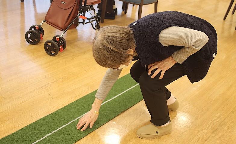 2025.07.30芝を読んで予測を先日、パターゴルフのアクティビティを開催しました。ゴルフをたしなんでいらっしゃたご入居者様が、パターゴルフに挑戦です。始める前にパターなどを持たずに芝を確認してから、失敗することなく一発でカップイン!「昔からラインを読むのは得意だったの」とおっしゃっていました。