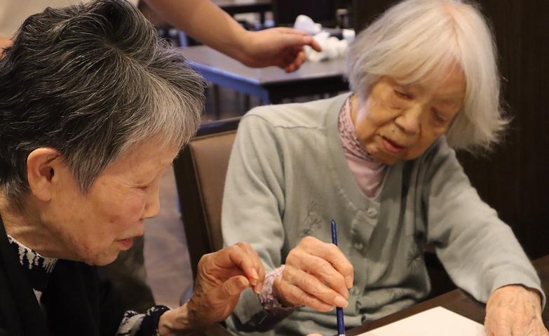 「昔はマニキュアをしていたけれど、最近していないわね」というご入居者様のご要望をお聞きし、ネイルアクティビティを実施させていただきました。爪のお手入れとネイルをさせていただくと、「わあ、きれい。見てみて」と満面の笑顔を見せてくださいました。「グランダ八幡山」では、その方の「幸せ」を知り、「やりたい」を可能な限り実現できるよう努めています。