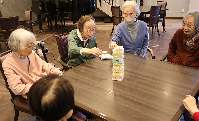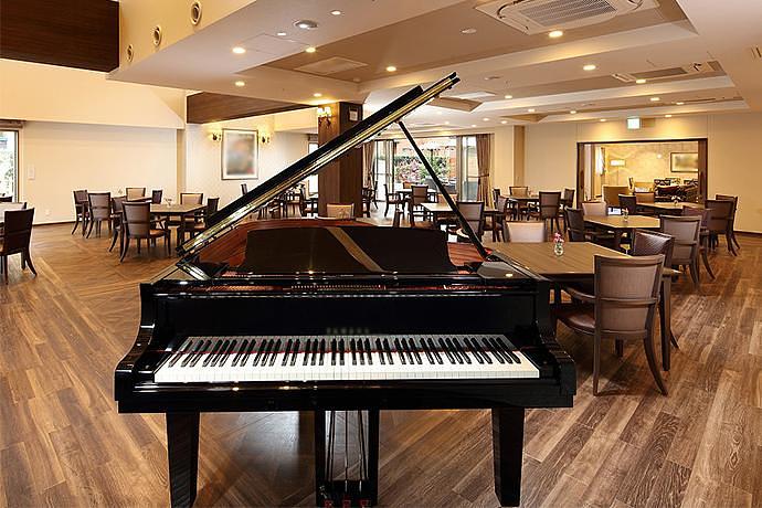 ダイニングルームにはグランドピアノを設置し、通常月に2回、ピアノコンサートや歌の会を開いています。皆様、心地よい音に耳を傾けたり、演奏に合わせて口ずさんだりと楽しまれていらっしゃるご様子です。音に触れあっていただくことで、五感を刺激し、日々の暮らしにハリと楽しみを持ってお過ごしいただけるよう努めています。