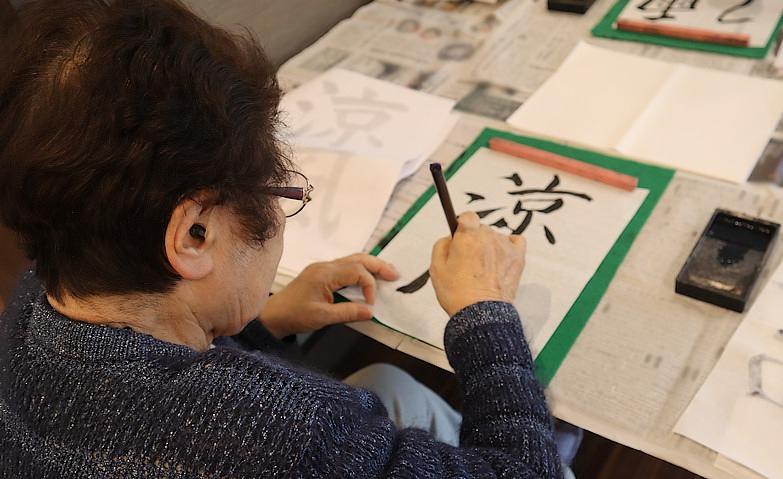 書道アクティビティのご様子 皆様の「やりたいこと」を取り入れながら、楽しみのある日々を