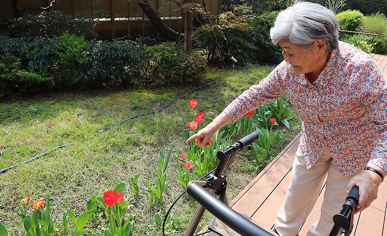 自然豊かな広い庭園では、春には枝垂れ桜、水仙にチューリップ、夏にかけて朝顔やひまわり、秋にはコスモスや紅葉など、四季折々の景観をお楽しみいただけます。お散歩されたご入居者様からは、「今日はこんな花が咲いた」「こんな実がついていた」といった話題が広がっています。また、ホームの周囲には「岡本静嘉堂緑地」や「岡本公園」があり、川沿いの遊歩道を散策される方もいらっしゃいます。自然豊かな環境で、思い思いのゆったりとした時間をお過ごしください。