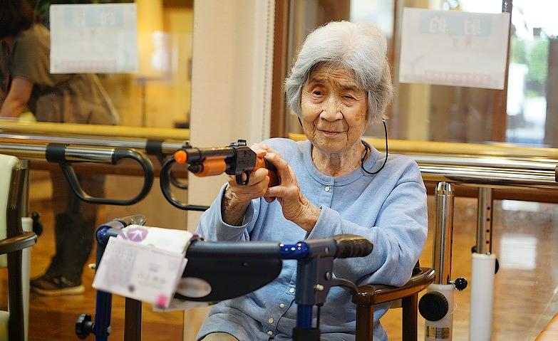 2025.09.03夏祭り~射的~先日、ホームで夏祭りを行いました。夏祭りでは食べ物だけでなく、ゲームでもお楽しみいただきました。釣りゲームや、千本引きとも言われるひもくじ、射的をお楽しみいただきました。射的の時の狙いを定める表情は真剣そのものです。