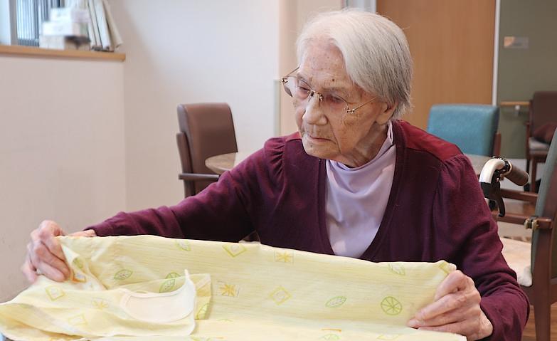 2025.07.30エプロンたたみ「私がやるわ」洗濯済みの食事用エプロンを、ご入居者様がたたんでくださいました。「私がやりますよ」とおっしゃり、意気揚々と始められると、あっという間にたたみ終えてしまいました。「いつでもたたみますよ」というお言葉に、私たちスタッフはとてもうれしかったです。ありがとうございます!