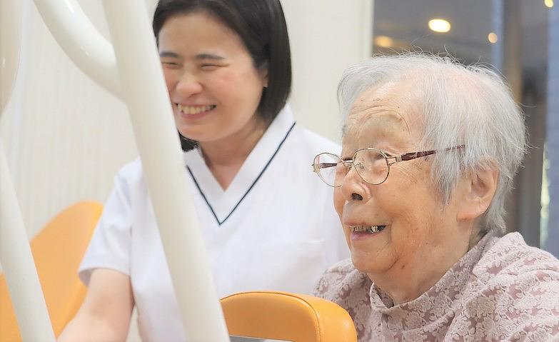 機能訓練指導員がお一人おひとりのお身体の状態やご希望に合わせて、歩行訓練や筋力トレーニングといったリハビリプランを作成いたします。また、無理なく続けていただけるよう、日常生活の動作をリハビリと捉える「生活リハビリ」のプログラムや、お身体の状態に合わせたお部屋の環境整備、福祉用具のご提案などもさせていただきます。「今できること」をできる限り続け、ご自分らしい暮らしをお送りいただけるようサポートしてまいります。