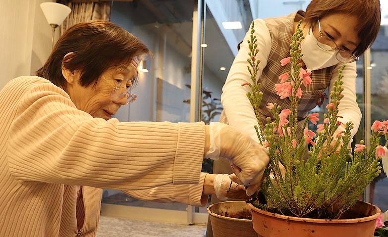 当ホームでは、これまでご自宅でされてきたことの継続や新たな楽しみの発見につながるよう、さまざまなクラブ活動をご用意しています。園芸クラブでは、通常毎月、その季節に咲き頃となるお花や野菜の植え替え、日々のお水やりを行い、きれいなお花が彩る中庭の環境を整えています。日々お水をあげることで、都会の中にお花のオアシスを作るのが楽しみ、というご入居者様も。皆様のお力を発揮していただきながら、これからもご入居者様と一緒に素敵な空間づくりに力をいれてまいります。