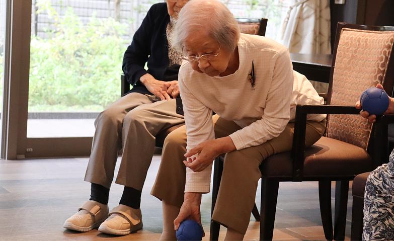ご入居者様の「いつまでも自分の足で歩きたい」というような目標や想いを可能な限り実現できるよう、機能訓練指導員による個別リハビリを実施しています。ご入居者様の姿勢や歩く姿、生活動作を確認し、お一人おひとりに合った個別のリハビリプログラムを作成。そのプログラムに沿ったリハビリを実施することで、目標の実現に向けた取り組みをおこなっています。