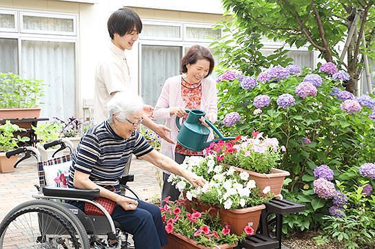 ホーム自慢の中庭で、ご入居者様が主体となって、季節の花や野菜などの栽培、収穫、調理をしています。ご入居者様のご趣味や特技を生かしながら、その方だからこそ担える「役割」をもっていただくことで、主体性や責任感を維持することを目的としています。また参加者同士でコミュニケーションを取りながら自主的に活動していただくことで、人とのつながりを認識することができると考えています。「園芸倶楽部」のなかのこのような体験を通じて、ご自分らしく活躍できる場を持っていただき、日々の生活がより充実したものになるようサポートさせていただきます。