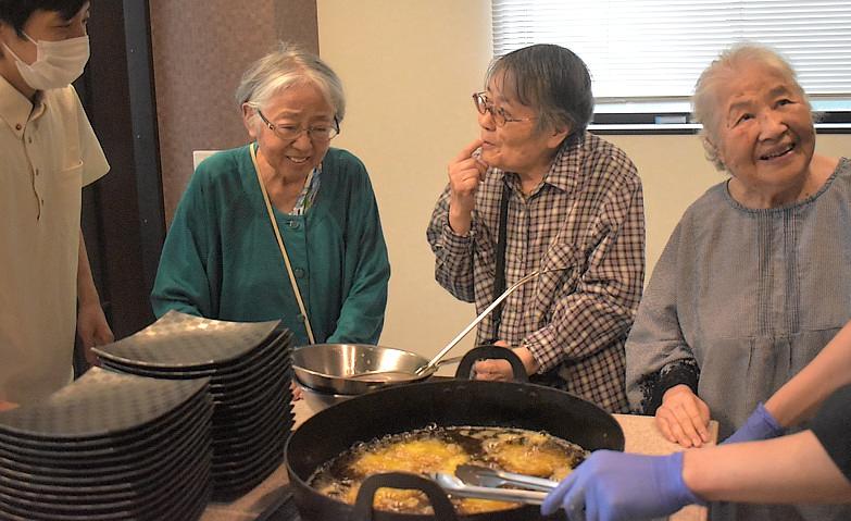 2025.10.15祝・5周年!2020年10月に開設して5周年を迎えた当ホームでは、お祝いのお食事を提供させていただきました。ご用意していた「にぎりずし」は、皆様楽しみにされていたご様子でした。厨房スタッフが目の前でマグロをさばいている様子に、ご入居者様も釘付け。酢飯の香りがほのかにただよい、食欲が倍増しているご様子でした。