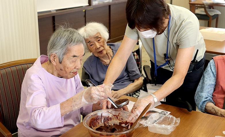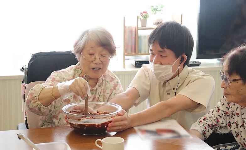 2025.08.20チョコレートプリン作り当ホームでは、定期的にお菓子作りを行っています。お写真のご入居者様は、昔ケーキ屋さんを営んでいらっしゃり、この日も慣れた手つきでプリン作りに取り組まれていました。一緒に参加されていたご入居者様は、昔ご自宅でさまざまなお菓子を作った思い出を教えてくださり、楽しいひとときをお過ごしいただけたようです。
