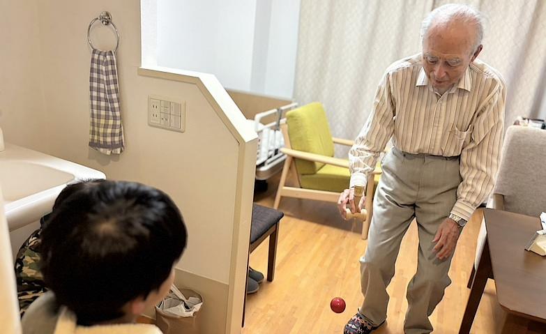 毎年夏の町内会のお祭りで、お神輿がホームの前を通ってくださるときには、ご入居者様にも玄関前に並んでいただき、雰囲気をお楽しみいただいています。ほかにも、年に3回ほど近隣の保育園の園児の皆様がホームを訪れ、、歌や小物のプレゼント交換をしています。地域との交流を大切に、この街で暮らしているという実感を持っていただけるよう努めています。