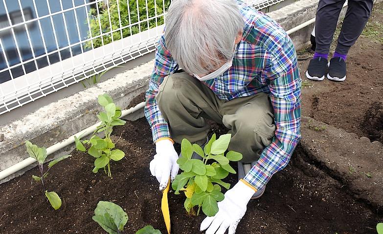 2025.06.04屋上で畑作り今年も「まどか永山」の屋上で畑作りを行いました。今回もボランティアの方がお越しくださり、ご入居者様と一緒にナス、トマト、枝豆、キュウリ、いちごを植えました。皆様今から収穫が待ち遠しいご様子で、「大きくなれ」とお声をかけながら、水やりをされていました。
