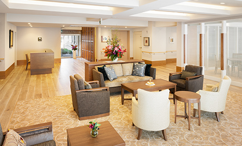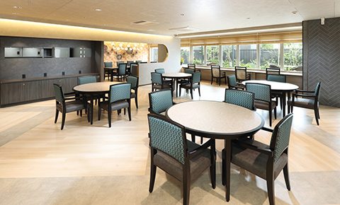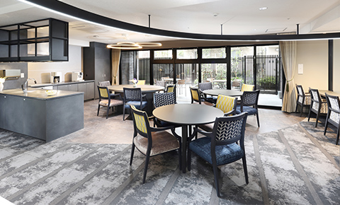 洗練された雰囲気が特長の「グランダ」と、ご利用しやすい料金の「まどか」のホームへご案内。共用スペースやスタッフの雰囲気をお確かめいただけます。