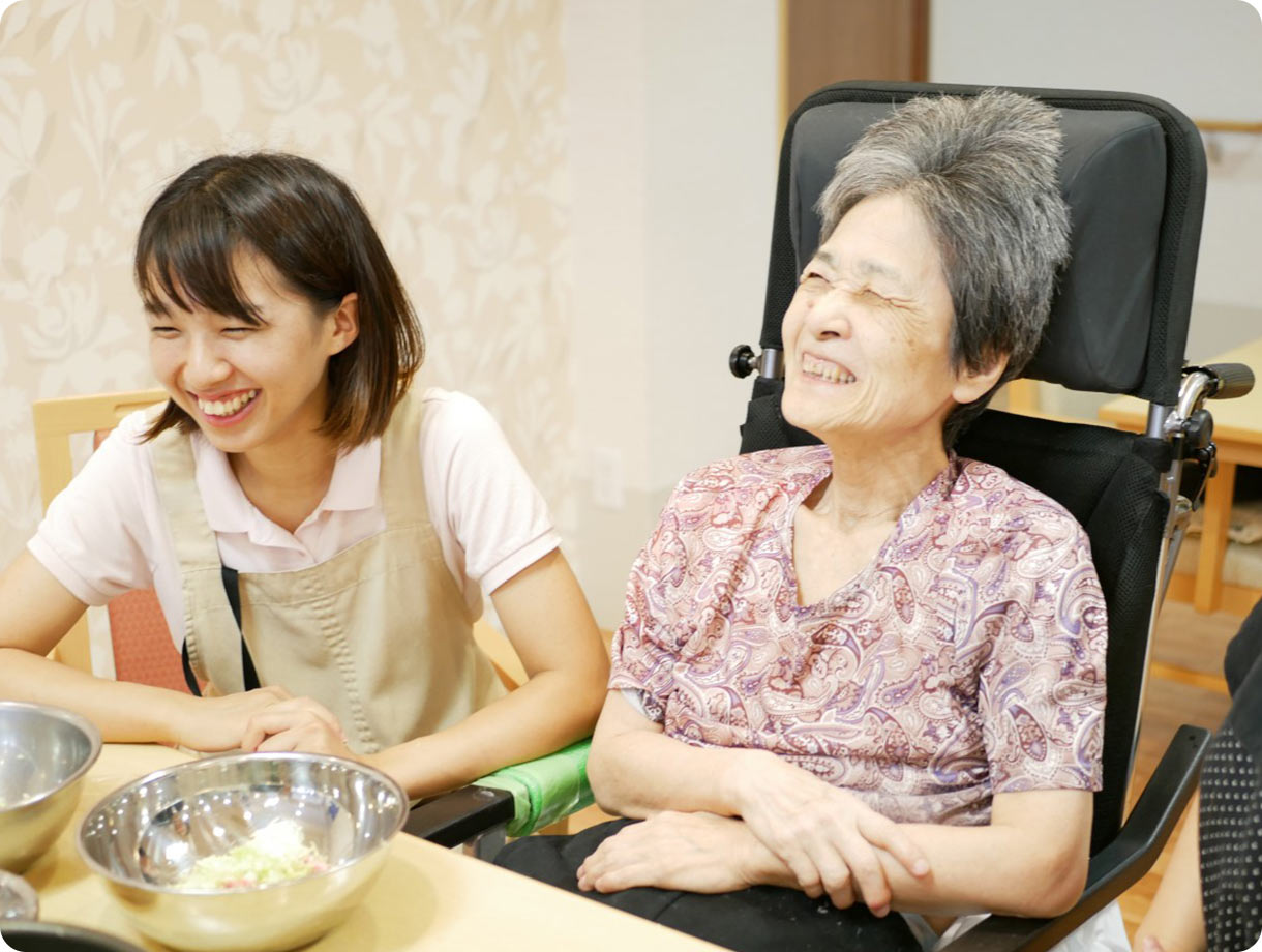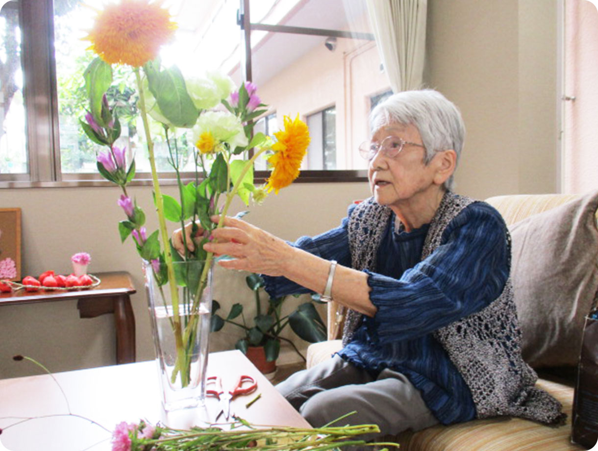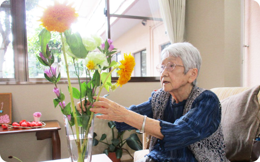 ●ご紹介しているエピソードは、個々のご入居者様の事例です。また、ご提供できるサービスやケアの内容は、ご入居者様お一人おひとりの心身の状態やホームの状況によって異なりますので、個別にご相談くださいますようお願い申し上げます。