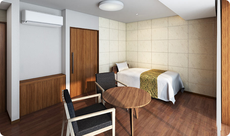 A1タイプ居室(37室中19室/30.9m²~33.4m²)ミニキッチン付き